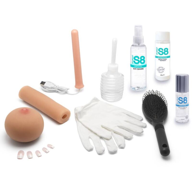 ¡Esta muñeca de lujo viene con una amplia gama de accesorios para que tu dama luzca y se sienta lo mejor posible en todo momento! En el paquete se incluyen dos conjuntos de lencería traviesa, limpiador de juguetes S8 Quality, lubricante S8 Silky, polvo S8 Renewal, guantes de algodón blanco para mover/manipular la muñeca, un juego de uñas de repuesto, una varita calefactora USB, un irrigador limpiador, un cepillo para el cabello y extensas instrucciones de cuidado. ¡Si quieres el trato real, este Bangers Babe es tu pareja perfecta y placentera! Tenga en cuenta que, debido a su tamaño y peso, este artículo no viene en un embalaje de producto convencional y, en cambio, se enviará en una caja de cartón discreta.